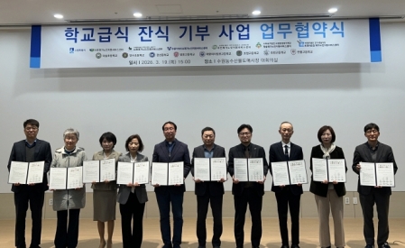 '수원시 학교급식 잔식 기부사업'에 참여하는 학교가 기존 8개에서 14개로 늘어난다. 수요처도 2개 기관에서 8개 기관으로 증가한다. 수원시는 19일 농수산물도매시장 관리동 대회의실에서 신규 참여기관과 업무협약을 체결하고, 적극적인 협력을 약속했다. 신규 참여기관은 다솔·당수초등학교, 권선중학교, 망포·매향여자정보·조원·천천·한봄고등학교 등 8개 학교와 서호·수원·수원YWCA·우만·청솔·효경의손길 등 6개 재가노인지원서비스센터이다. 협약에 따라 8개 학교는 학교급식 잔식 기부에 협력하고, 6개 재가노인지원서비스센터는 학교급식..