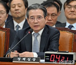 김용범 대통령실 정책실장이 6일 국회 운영위원회에서 열린 대통령비서실·국가안보실·대통령경호처 등에 대한 국정감사에서 의원 질의에 답하고 있다.