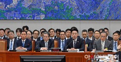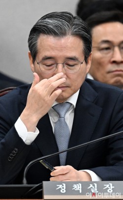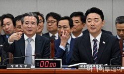 강훈식 대통령비서실장이 6일 국회 운영위원회에서 열린 대통령비서실·국가안보실·대통령경호처 등에 대한 국정감사에 참석하고 있다. 아래는 김용범 대통령실 정책실장.
