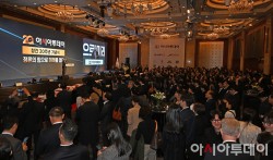10일 오후 서울 중구 롯데호텔 크리스탈볼룸. 이른 오후부터 로비 복도는 북새통이었다. 양손에 명함을 든 하객들이 서로 인사를 나누며 환담을 이어갔다. 정·재계와 외교계 주요 인사들이 한자리에 모인 아시아투데이 창간 20주년 기념식 현장은 뜨거운 열기로 가득했다. 입구에는 '정론의 힘으로 미래를 열자'는 문구가 적힌 대형 현수막이 걸렸다. 축하 화환이 줄지어 세워졌고, 호텔 직원들은 환한 미소로 손님들을 맞았다. 행사장은 말 그대로 '축하의 장..
