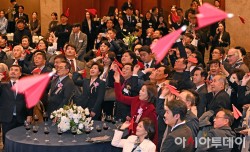 글로벌 종합일간지 아시아투데이가 창간 20주년을 맞이한 가운데 10일 서울 중구 소공동 롯데호텔 크리스탈볼룸에서 열린 아시아투데이 창간 20주년 기념식에 참석한 우종순 아시아투데이 회장과 장동혁 국민의힘 대표, 정세균 전 국회의장, 오세훈 서울시장을 비롯한 각계 인사들이 기념촬영을 하고 있다.
