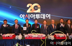 글로벌 종합일간지 아시아투데이가 창간 20주년을 맞이한 10일 서울 중구 소공동 롯데호텔 그랜드볼룸에서 열린 창간 20주년 기념행사에서 우상호 대통령실 정무수석(오른쪽 두 번째)이 건배사를 하고 있다. (사진 오른쪽부터) 김태흠 충남지사, 우상호 정무수석, 손병두 CNBCKOREA 회장, 정세균 전 국회의장, 우종순 아시아투데이 회장, 장동혁 국민의힘 대표, 주호영 국회부의장. 박종현 한국기자협회장. /정재훈 기자