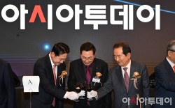 글로벌 종합일간지 아시아투데이가 창간 20주년을 맞이한 10일 서울 중구 소공동 롯데호텔 그랜드볼룸에서 열린 창간 20주년 기념행사에서 우종순 아시아투데이 회장(가운데)과 장동혁 국민의힘 대표, 정세균 전 국회의장 등 참석 내빈들이 축하 건배를 하고 있다. (사진 오른쪽부터) 김태흠 충남지사, 우상호 대통령실 정무수석, 손병두 CNBCKOREA 회장, 정세균 전 국회의장, 우종순 회장, 장동혁 국민의힘 대표, 주호영 국회부의장, 박종현 한국기자..