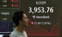 코스피 지수가 10거래일 만에 4000이 무너진 채 마감했다.7일 한국거래소에 따르면 코스피 지수는 전 거래일 대비 1.81% 내린 3953.76에 장을 마쳤다. 장 중 최저가는 3887.32, 최고가는 4037.61이었다.시가총액 상위 10개 종목 중 삼성전자(-1.31%), SK하이닉스(-2.19%), LG에너지솔루션(-1.38%), 삼성전자우(-1.95%), 현대차(-1.86%), 두산에너빌리티(-1.77%), 한화에어로스페이스(-4.8..