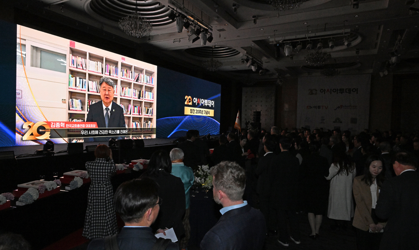 행사장을 직접 찾은 송수근 한국국제문화포럼 회장(전 문화체육관광부 차관)은 "지난 20년 동안 아시아투데이는 문화와 예술, 콘텐츠 산업의 성장 과정을 세심히 조명하며 우리 사회의 문화적 가치를 확산시켜 왔다"고 높이 평가했다. 이창기 서울시 문화수석은 "서울시는 시민의 일상 속에 문화가 살아 숨 쉬는 도시를 만들기 위해 노력하고 있다. 그 여정 속에서 아시아투데이는 늘 든든한 동반자였다"고 강조했다. 안호상 세종문화회관 사장은 "앞으로도 아시아투데이가 예술과 문화의 숨결이 살아 있는 보도로 시민의 삶에 희망을 전하는 언론으로 오래도록 빛나길 바란다"고 말했다.