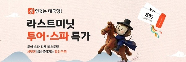 할인 혜택은 쿠폰 방식으로 제공된다. 기획전 대상 상품에 한해 최대 5% 할인 쿠폰을 무제한으로 발급받을 수 있으며, 상품별로 3% 또는 5% 쿠폰이 적용된다. 설 연휴 전까지 누구나 사용할 수 있어 출발이 임박한 일정에도 활용도가 높다.