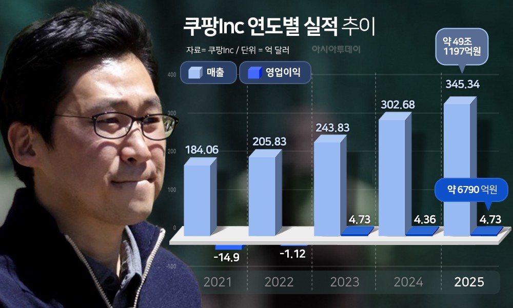 쿠팡이 지난해 연매출 49조원대을 기록하며 사상 최대 실적을 달성했다. 시장에서 거론됐던 50조원 고지에는 이르지 못했지만, 연간 영업이익 6790억원으로 역대 최대를 경신하며 3년 연속 흑자 기조를 이어갔다. 다만 지난해 12월 발생한 개인정보 사고 영향으로 4분기 성장세가 둔화됐고, 분기 기준 수익성은 눈에 띄게 악화됐다.