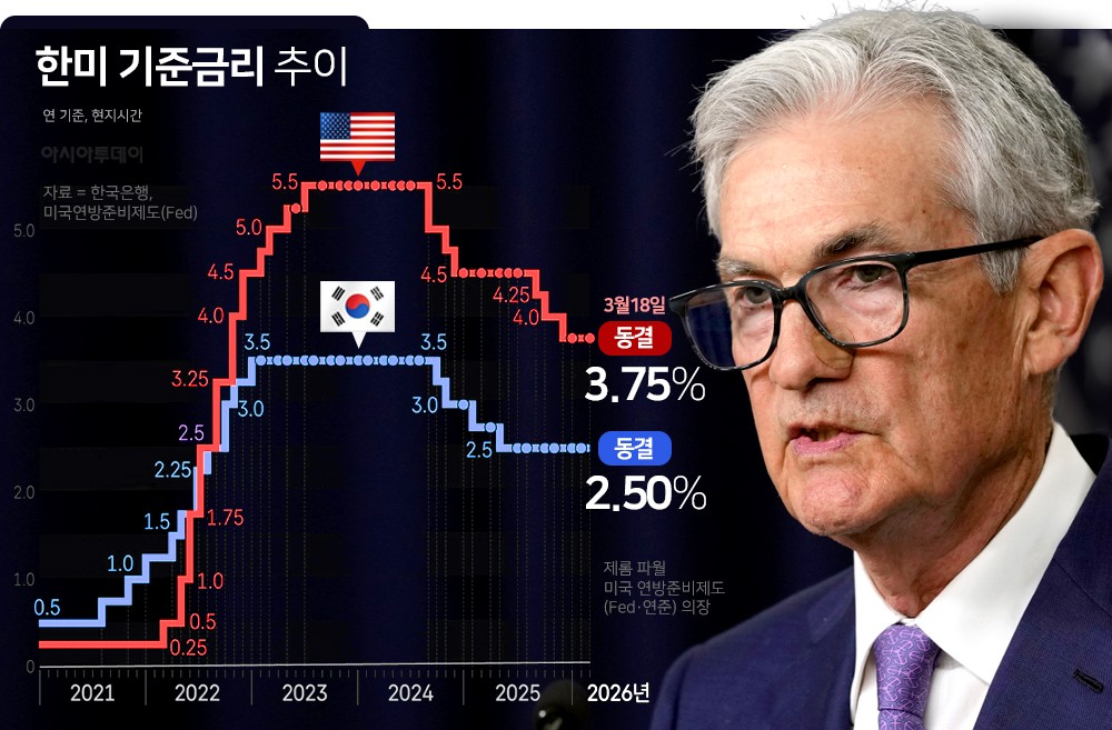 이는 지난해 9·10·12월 3차례 연속 인하 뒤 올해 1월에 이어 두 차례 연속 동결이다. 연준은 올해 말 기준금리 중간값을 3.4%로 유지해 연내 한 차례 인하 가능성을 열어뒀으나, 물가 전망치를 올리고 성장률 전망치도 소폭 높였다.
