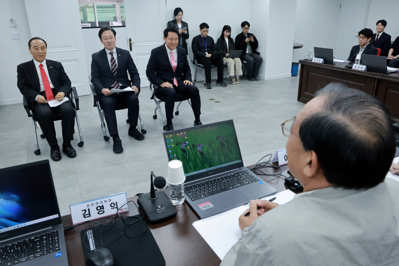 한편 이날 면접에는 오 시장과 박수민 의원, 김충환 전 강동구청장 등이 참석했다. 현재 국민의힘 서울시장 공천 신청자는 이날 면접자를 비롯해 윤희숙 전 의원, 이상규 서울 성북을 당협위원장, 이승현 인팩코리아 대표 등 6명이다.