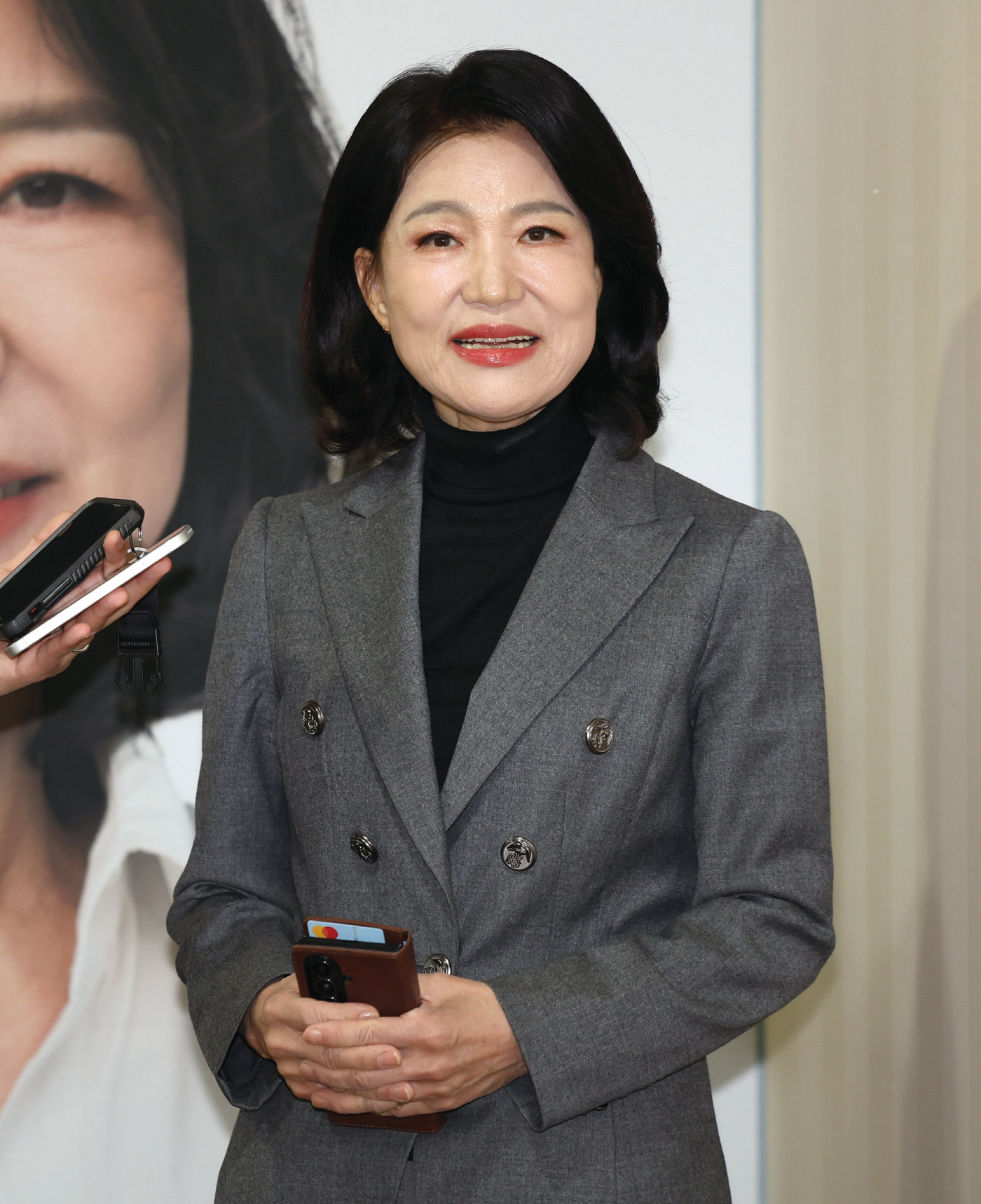 | 대구시장 선거에 출사표를 던진 이진숙 전 방송통신위원장이 지난 6일 대구 시내 자신의 선거캠프에서 기자들과 만나 질문에 답하고 있다. /연합 |