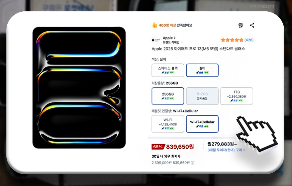 쿠팡 가격오류로 아이패드 프로13인치 M5가 83만9650원에 노출된 화면. 쿠팡 / 그래픽=박종규 기자